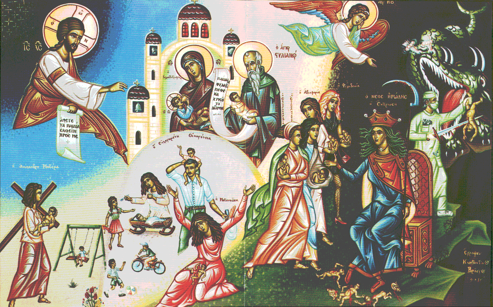 Nota: Aquí, el padre Paisios, con la iluminación divina que posee, muestra cuán terrible es este pecado e intenta convencer al mundo entero sobre cuán grave es el pecado del aborto. Él no usa esto como una astucia para apoyar a ningún partido político. Y no apoyaría a los que usaran la violencia para hacer apología contra los que practican el aborto o contra sus pacientes. Que sus palabras nos concedan la contrición de aprender cuán gran pecado es el aborto, y cómo podemos regresar a Cristo y su arrepentimiento, reconociendo la sagrada imagen de Dios en cada ser humano, incluso en el vientre de una madre.