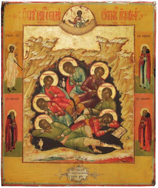 El Señor dispuso a los jóvenes en un sueño milagroso que duró casi dos siglos. Mientras tanto, las persecuciones contra los cristianos cesaron. Durante el reinado del emperador Teodosio el Joven (408-450) habían herejes que negaban que habrá una resurrección general de los muertos en la Segunda Venida de nuestro Señor Jesucristo. Algunos de ellos decían: “¿Cómo puede haber una resurrección de los muertos cuando no habrá ni alma ni cuerpo, ya que están desintegrados?”. Otros afirmaban: “Solo las almas tendrán una resurrección, ya que es imposible que los cuerpos se levanten y vivan tras los mil años, cuando incluso el polvo no permanece”. Por lo tanto, el Señor reveló el misterio de la Resurrección de entre los muertos y la vida futura por medio de sus siete santos.