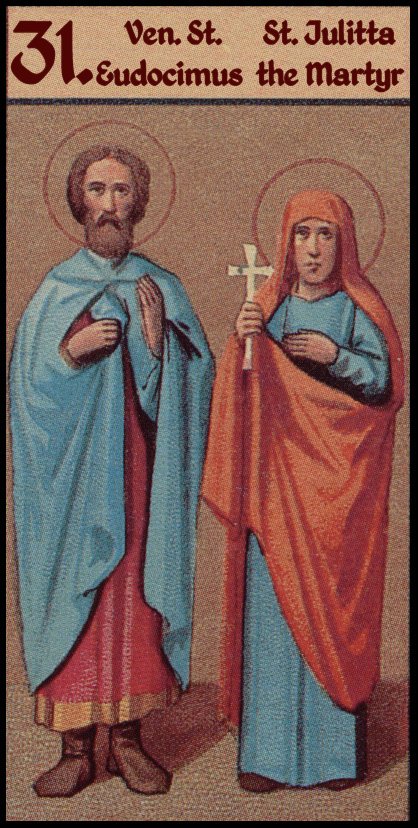Julita nació en Cesarea, Capadocia. Tuvo una disputa con su vecina sobre unas propiedades. La vecina fue al juez e informó de que Julita era una cristiana, lo cual, en aquel momento, significaba lo mismo que estar fuera de la protección del estado. Santa Julita rechazó con gusto su propiedad en vez de rechazar su fe. Pero incluso después de esto, los impíos paganos no la dejaron en paz sino que la torturaron y finalmente la quemaron viva en el año 303. Así, esta seguidora de Cristo sacrificó su estado y su cuerpo en aras a la salvación de su alma.