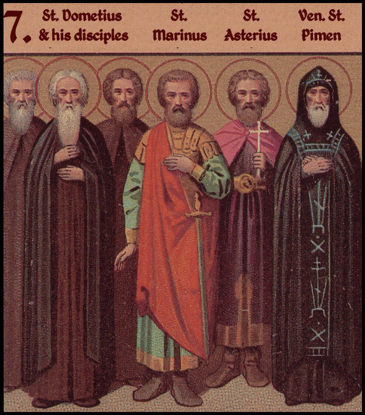 Domecio nació en Persia siendo un pagano, durante el reinado del emperador Constantino. Conoció la fe de Cristo siendo joven, abandonó el paganismo y fue bautizado. Tanto amaba Domecio la verdadera fe que abandonó todo lo mundano y fue tonsurado monje en un monasterio cerca de la ciudad de Nisibis. Vivió durante algún tiempo entre los hermanos y luego llevó una vida de silencio para estar con cierto anciano archimandrita llamado Urbel, del que se decía que no había comido nada cocinado durante sesenta años. El anciano Urbel ordenó a Domecio como diácono y cuando quiso obligarlo a recibir el rango del sacerdocio, Domecio se alejó a una montaña aislada y se estableció en una cueva. Alcanzó tal grado de perfección mediante el ayuno, la oración, las vigilias nocturnas y los pensamientos piadosos que curaba a los enfermos. Cuando Juliano el Apóstata llegó a aquellas regiones, oyó hablar de Domecio y envió a algunos hombres para sellarlo vivo en la cueva en la que moraba junto con dos de sus discípulos. Así, este santo de Dios murió y tomó posesión de su morada en el reino de Dios, en el año 363.