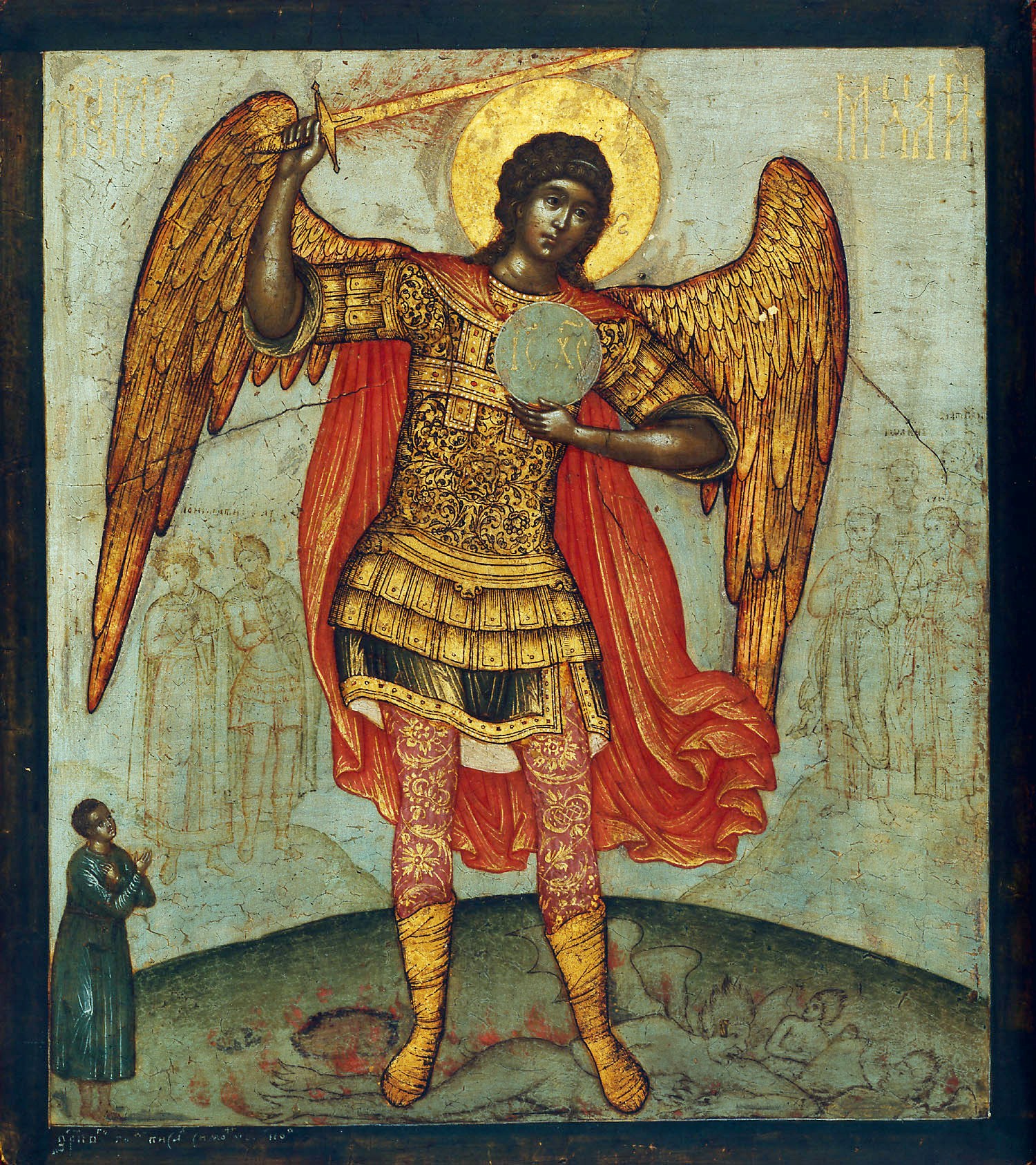 Contemplando el esplendor de tu belleza espiritual y el poder de tu mano diestra, oh arcángel de Dios, nosotros, como criaturas terrestres atrapadas en la carne de esta tierra, nos llenamos de maravilla, júbilo y gratitud hacia el Creador de todos, exclamando con todos los poderes celestiales: ¡Aleluya!