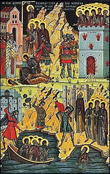 Los santos mártires cantaban himnos a la Theotokos mientras ardía la torre, y entregaron sus almas a Dios el 10 de octubre de 1282. En diciembre del mismo año, el ignominioso emperador Miguel moría en la pobreza, cuando el rey serbio Milutin se alzó contra él en defensa de la Ortodoxia.