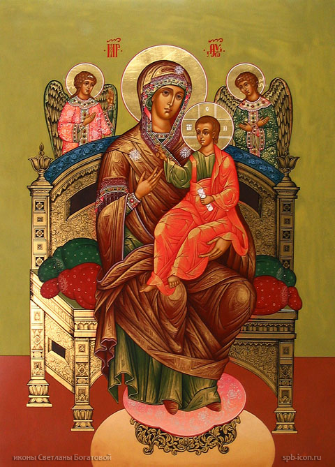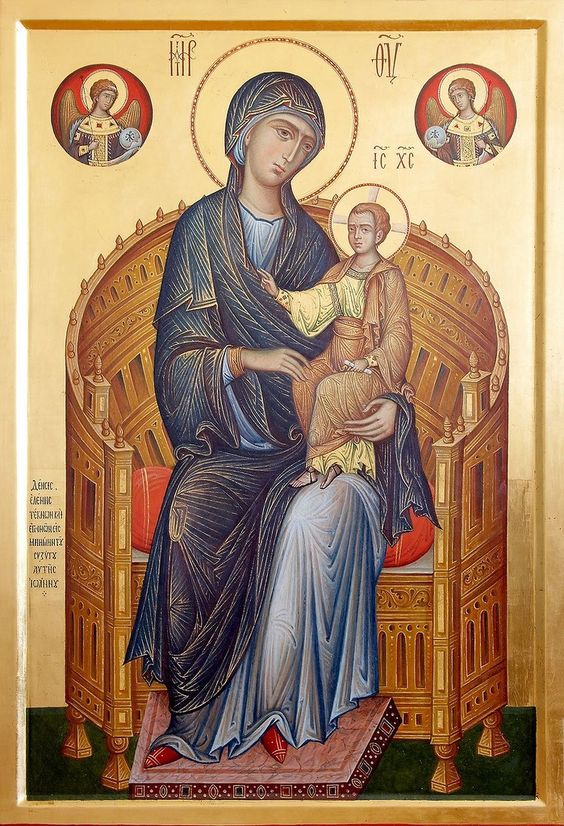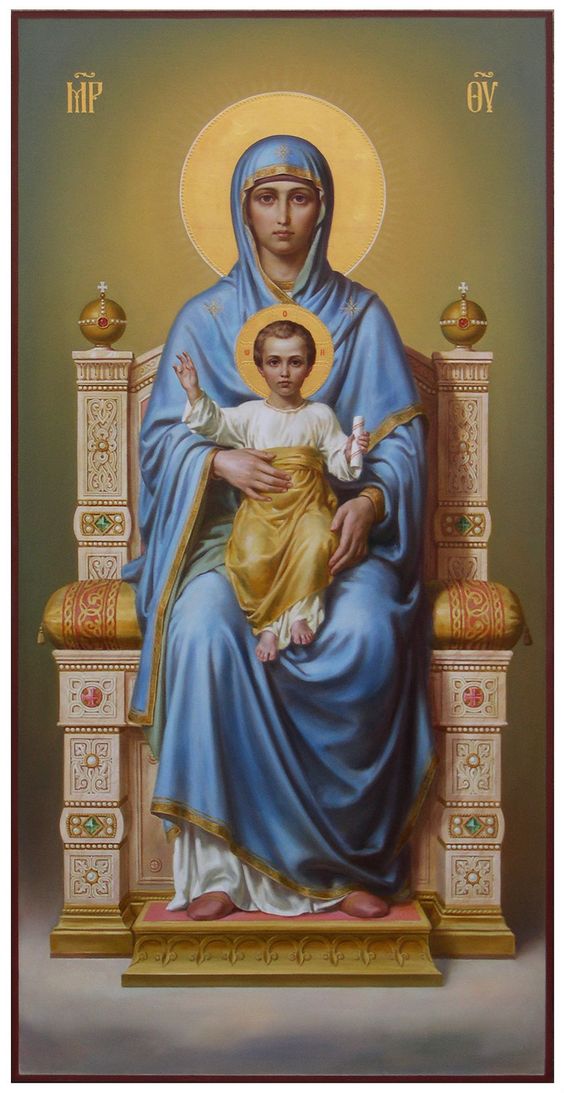 No hay intelecto o palabras que puedan expresar la grandeza de Aquella que nació en la pecadora raza humana pero que llegó a ser «más honorable que los Querubines e incomparablemente más gloriosa que los Serafines.» «Contemplando la Gracia de los misterios secretos de Dios hechos manifiestos y claramente cumplidos en la Virgen, me alegro; y no logro entender la forma extraña y secreta por medio de la cual la Purísima ha sido revelada como única elegida por encima de toda la creación, visible y espiritual. Por lo tanto, con dejo de alabarla, caigo atónito con asombro tanto de mente como de palabra y aun así me atrevo a proclamar que Ella es de hecho el Tabernáculo celestial» (IKOS de la Entrada en el Templo). «Toda lengua queda perpleja de cómo alabarte según Te es debido, e incluso un espíritu del mundo de arriba se desconcierta cuando trata de cantar tus alabanzas, Oh Theotokos. Pero ya que eres Bondadosa, acepta nuestra fe, pues conoces bien nuestro amor inspirado por Dios; y como eres la protectora de los cristianos, Te magnificamos» (Irmos del noveno Cántico, Servicio de la Teofanía).